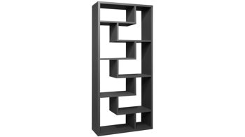 Die trendig-anthrazitfarbenen Mattlackoberflächen und die verspielte, aber dennoch harmonische Anordnung der Böden verleihen dem Raumteiler eine sehr moderne und elegante Ausstrahlung. Er bietet Ihnen insgesamt acht Fächer, in denen Sie etwa Bücher und Deko aufbewahren können. Doch auch Aktenordner sind hier gut aufgehoben. Die Maße des Regals belaufen sich auf ca. 90 x 199 x 33 cm (BxHxT).