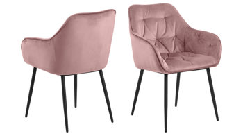 Der rosefarbene Samtbezug des Polsterstuhls verleiht Ihrem Zuhause eine edle Note. Die schwarzen Metallfüße runden den ansprechenden Look des Armlehnstuhls ideal ab.